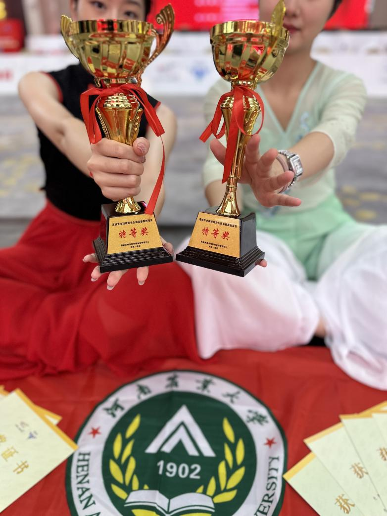 舞蹈表演专业2021级1班马家骅在高校专业院校组女生组中级原创项目《我的父亲》、2021级1班边缘在高校专业院校组女生组高级原创项目《亲爱的中国》中分别荣获特等奖,三位指导老师被评为优秀教练员。