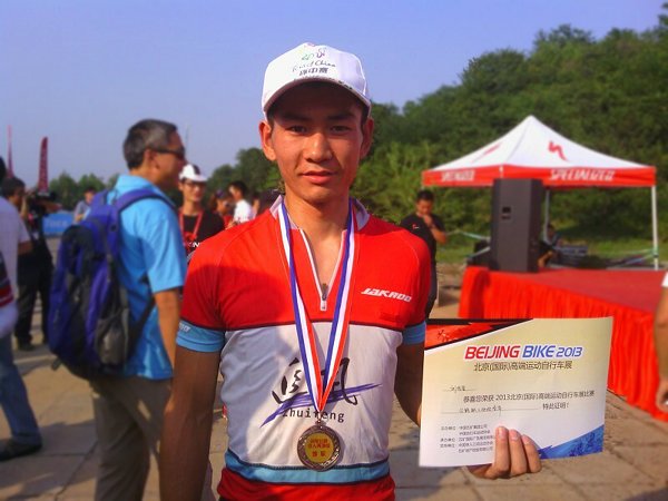 刘佳显在北京自行车赛铁人两项比赛中获得第三名