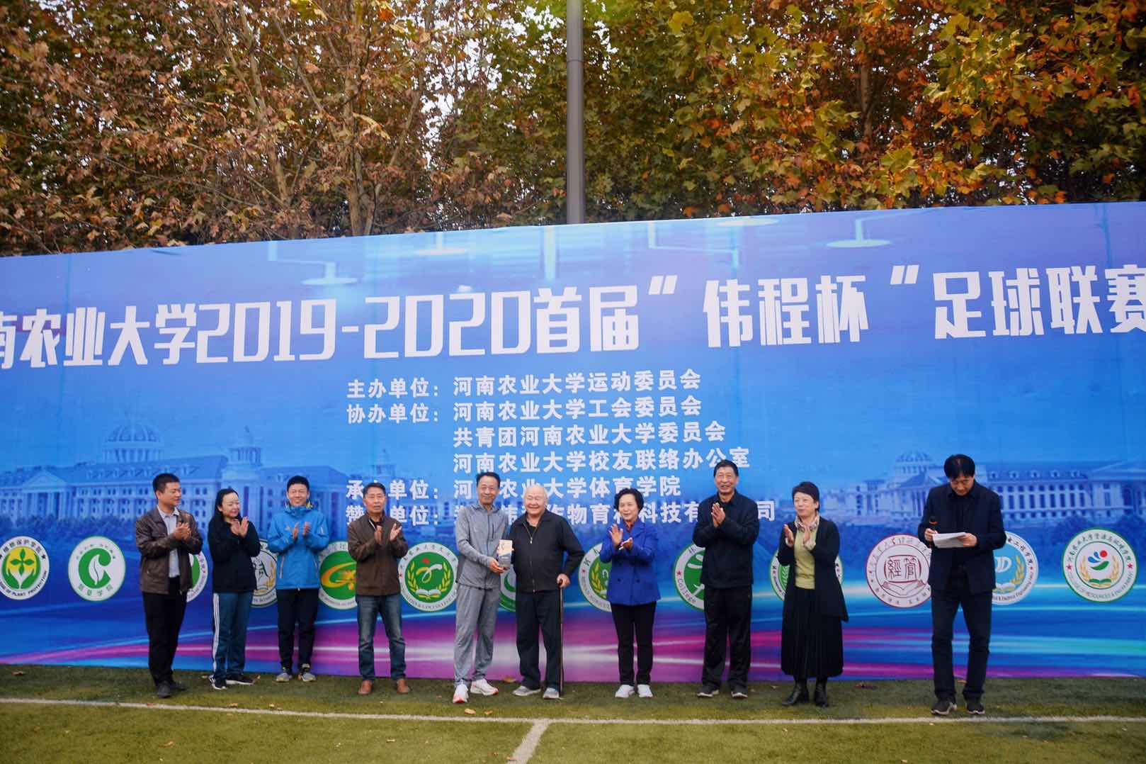 2019-2020首届“伟程杯”足球联赛颁奖仪式在龙子湖校区足球场举行。校党委书记魏蒙关,副校长、校运动委员会主任尹新明出席了颁奖仪式。校工会、校友办、校团委和快猫视频