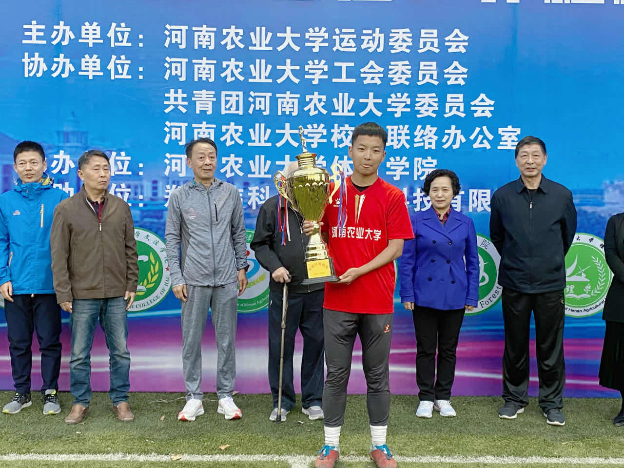 承办,郑州伟科作物育种科技有限公司赞助的伟程杯”足球联自2019年11月份开赛,受疫情防控影响,赛程历时一年,共有13个学院和教工足球队、300 多名运动员参赛。比赛过程中,裁判员始终严格履行裁判职务,,各参赛队伍始终严格遵守比赛规则,秉持“友谊第一、比赛第二”的原则,顽强拼搏、赛出了水平、赛出了风格。