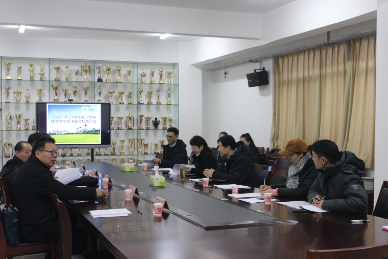 12月8日上午,学校期中检查组在教务处副处长王金铎、教学督导夏百根组长的带领下,检查组成员文法学院副院长杨红朝院长、外语学院副院长张卫东院长、教务处赵鹏飞老师来到快猫视频 进行期中检查工作。快猫视频 负责人向全体检查组成员就学院教学基本情况、专业建设、课程建设情况、基层教学组织建设情况、教授上课情况以及实践教学情况做出汇报。随后,检查组成员王金铎处长、杨红朝院长与快猫视频 教师开展教师座谈会;检查组成员张卫东院长、赵鹏飞老师与快猫视频 部分学生开展学生座谈会。夏百根老师对2020届学士学位论文、期末考试试卷以及青年教师教案进行审查。检查组成员王金铎处长深入课堂,切实了解课堂授课情况,在快猫视频 体育馆111教室开展了听课看课活动 。