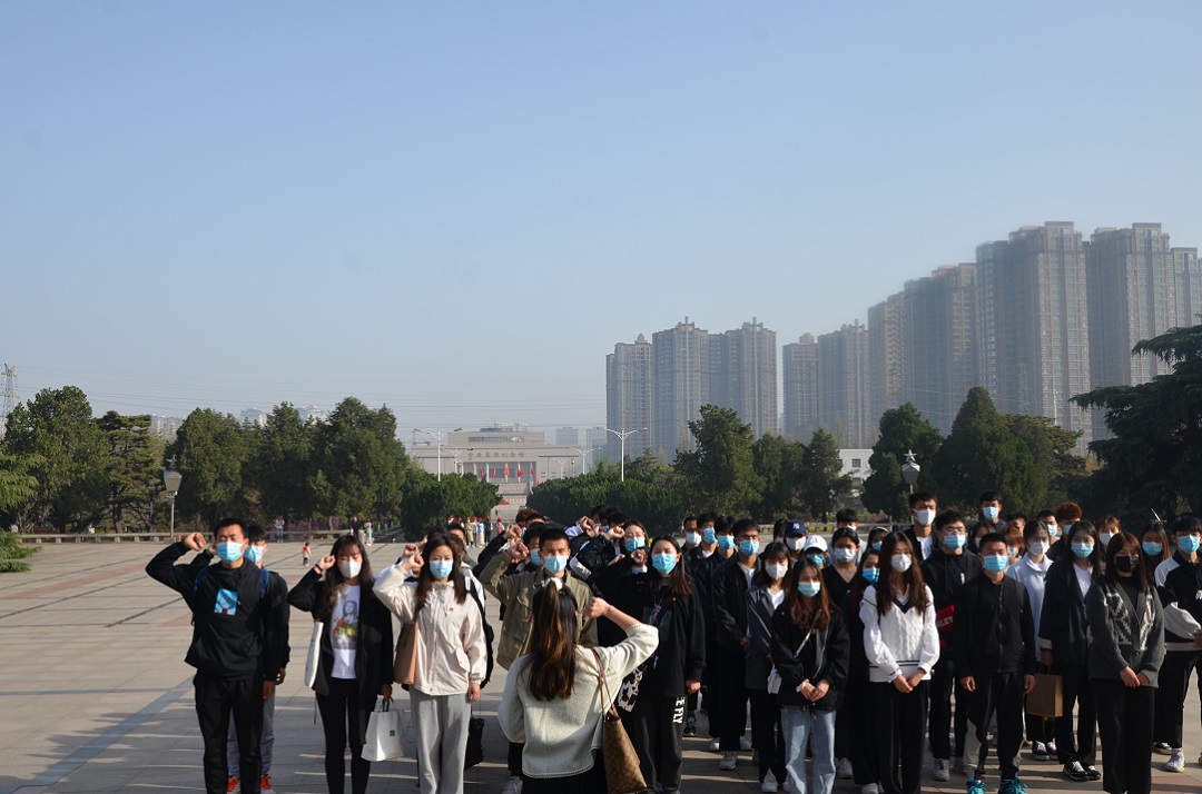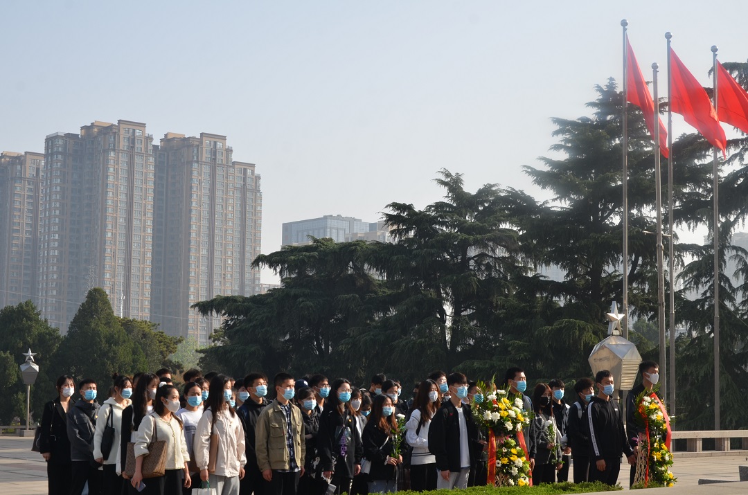 “学习百年党史,用奋斗致敬英烈”2021年清明祭英烈主题党日活动在郑州烈士陵园举行。全体学生党员、第四期青马班成员参加活动。