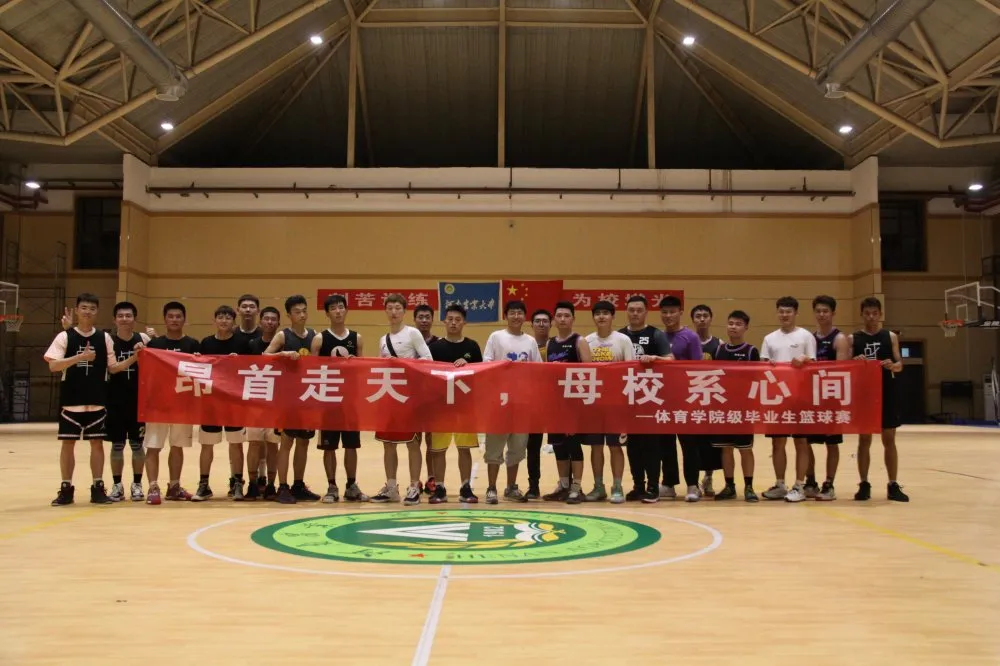 在体育馆二楼篮球场举行了以“比赛无输赢,青春不散场”为主题的毕业生篮球比赛。