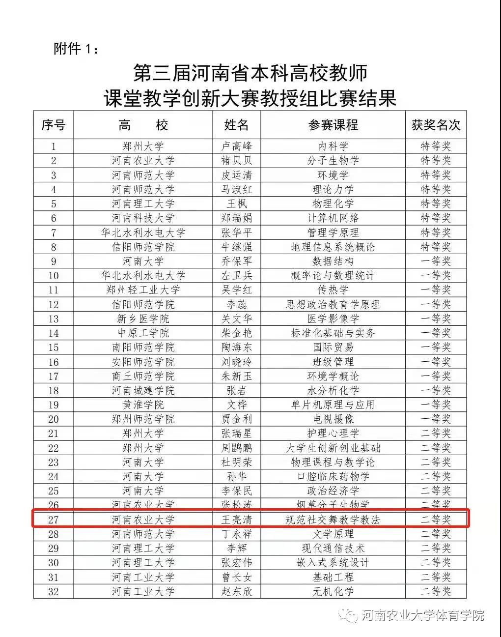 王亮清老师在第三届河南省本科高校教师课堂教学创新大赛教授组比赛中获得二等奖的好成绩。
