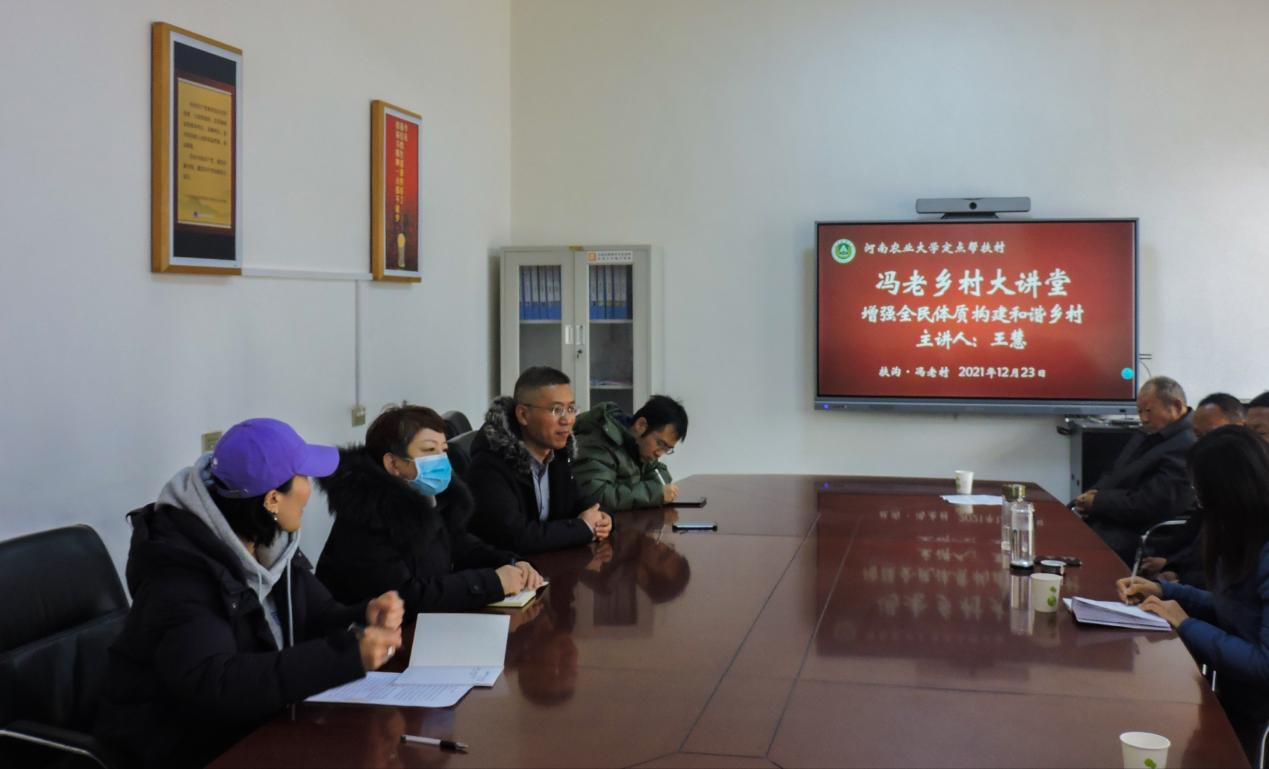 在“服务全民健身 助力乡村振兴”座谈会上,快猫视频 党委书记吴旭静首先介绍了快猫视频 的基本情况,并表示快猫视频 在脱贫攻坚的稳固阶段,将以农村体育工作为契合点,在建设美丽乡村、助力乡村振兴方面发挥积极作用。在随后进行的“冯老乡村大讲堂”上,快猫视频 教师王慧以“增强全民体质 构建和谐乡村”为题,为老百姓上了一堂生动的体育科普讲座,并为村民做了健身示范。接着吴旭静代表快猫视频 党委向冯老村小学捐赠了党建书籍资料及体育健身工具。随后看望了脱贫户王贵发、杨德柱,为他们送去生活物资。