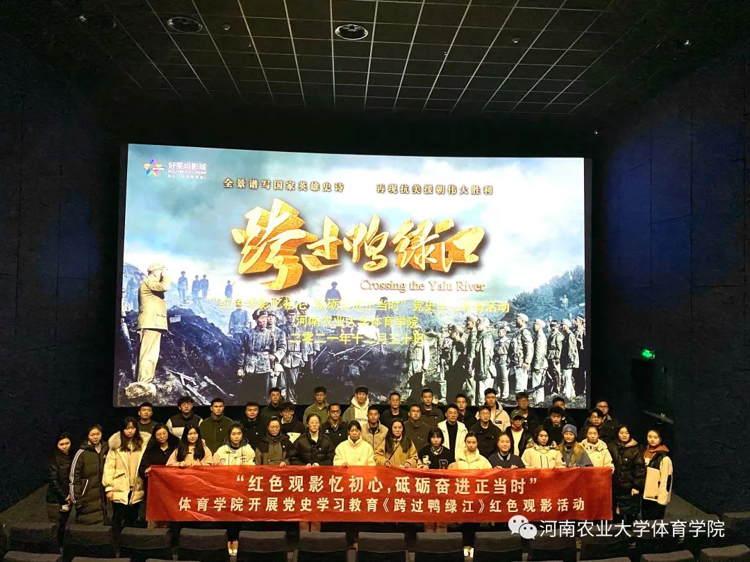 组织部分师生党员以主题党日活动形式,在好莱坞影城集中观看电影《跨过鸭绿江》,通过电影银幕共同回顾了那场艰苦卓绝、震撼人心的抗美援朝战争。.