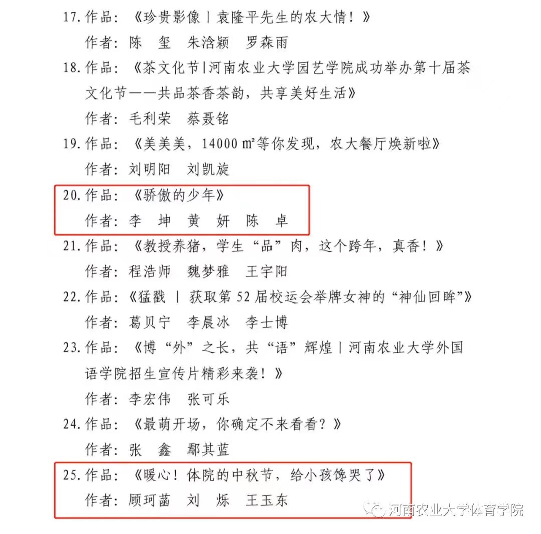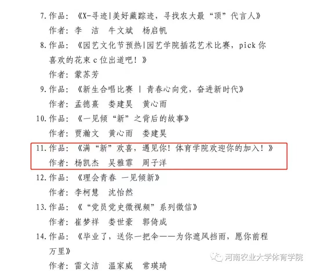 近日,我校发布《关于表彰2020—2021年度快猫视频 十佳新媒体平台、十佳短视频、优秀新媒体工作者、优秀新媒体作品的决定文件》(校党宣【2021】12号)。快猫视频 新媒体作品《骄傲的少年》、《暖心!体院的中秋节,给小孩馋哭了》荣获一等奖;作品《满“新”欢喜,遇见你!快猫视频 欢迎你的加入!》荣获三等奖;院团委书记黄妍、院新媒体主任陈卓荣获“优秀新媒体工作者”的荣誉称号。