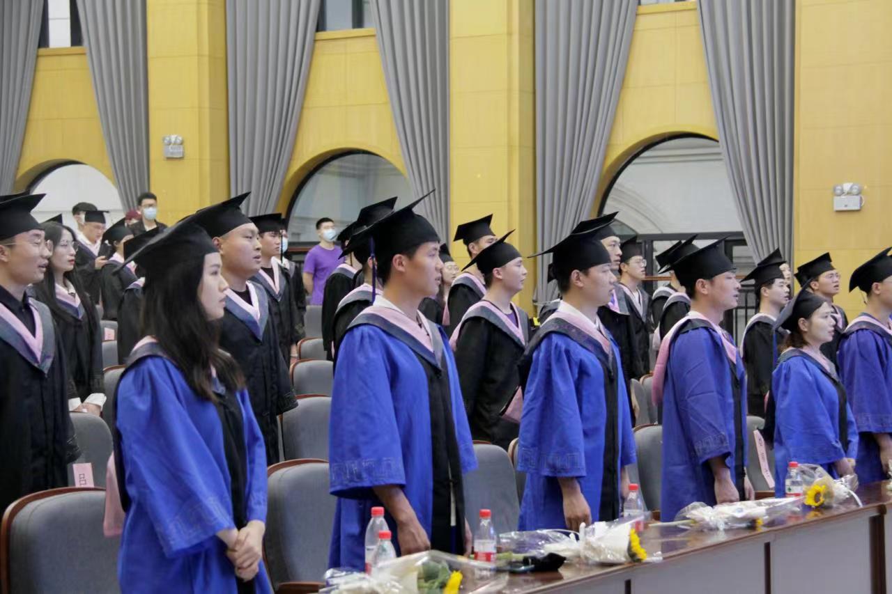 副院长唐大鹏宣读获得硕士学位和学士学位学生名单。接着,学院学位评定委员会成员为毕业生一一援正流苏、颁发学士学位证书,并合影留念。