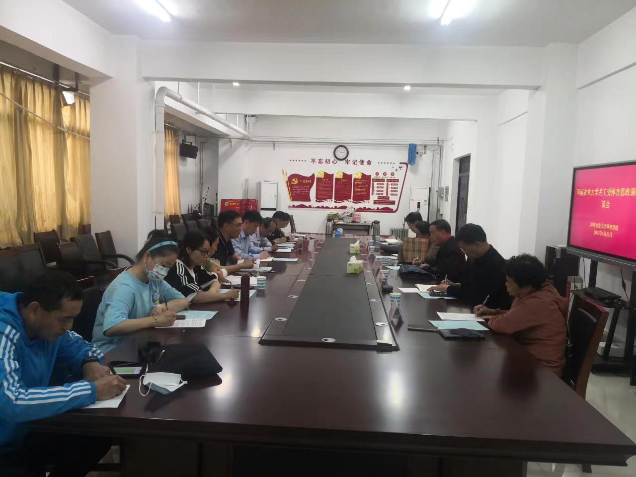 副院长唐大鹏就快猫视频 课程思政的建设情况进行了汇报。与会教师代表围绕快猫视频 教学成果、教学经验和德智体美劳全面发展,“五育并举”中体育如何发挥重要的思政作用等方面进行发言讨论。