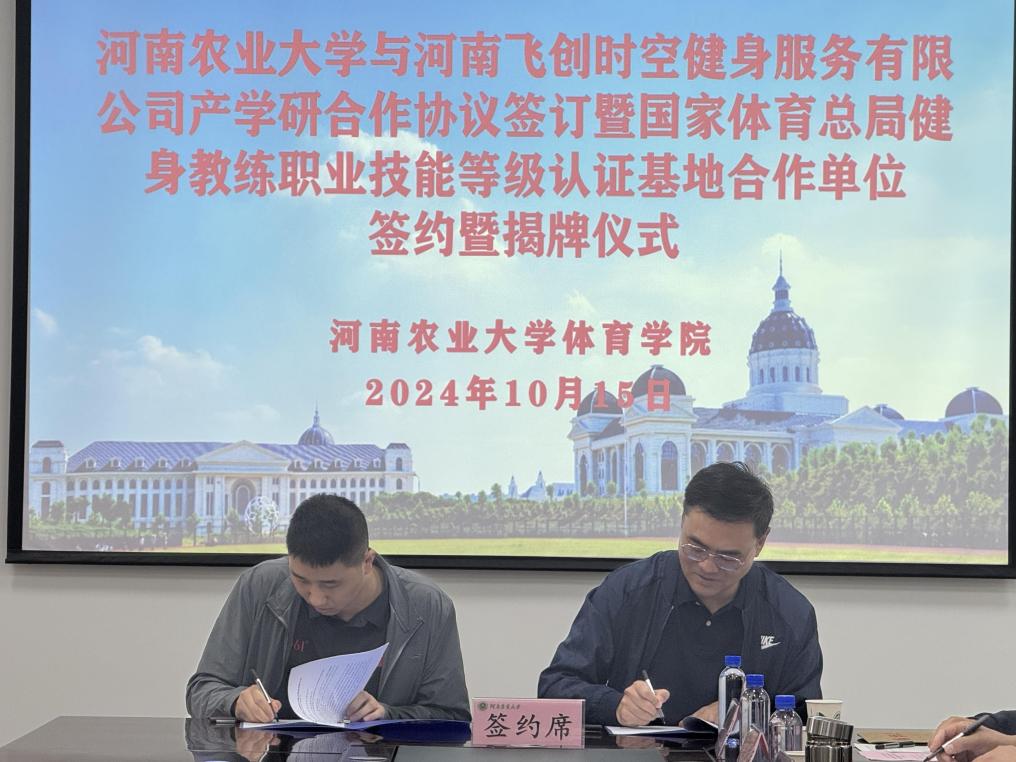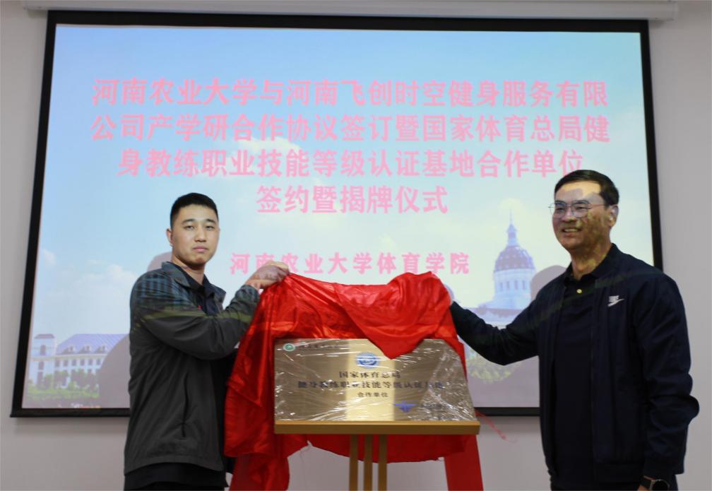 与河南飞创时空健身服务有限公司产学研合作协议签订暨国家体育总局健身教练职业技能等级认证基地合作单位揭牌仪式成功举行