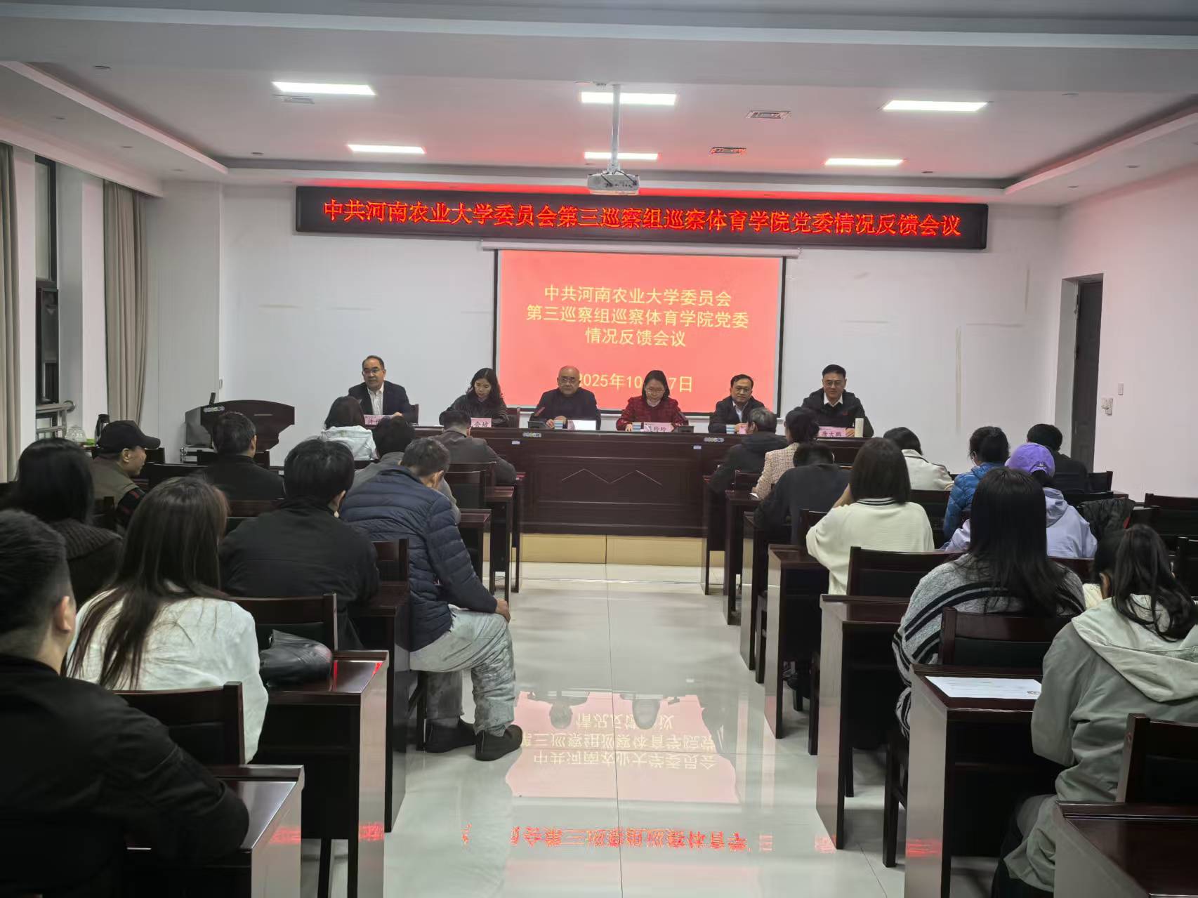 党委组织部、校纪委、党委巡察办关负责同志,第三巡察组全体成员,学院领导班子和教职工生代表参加会议。