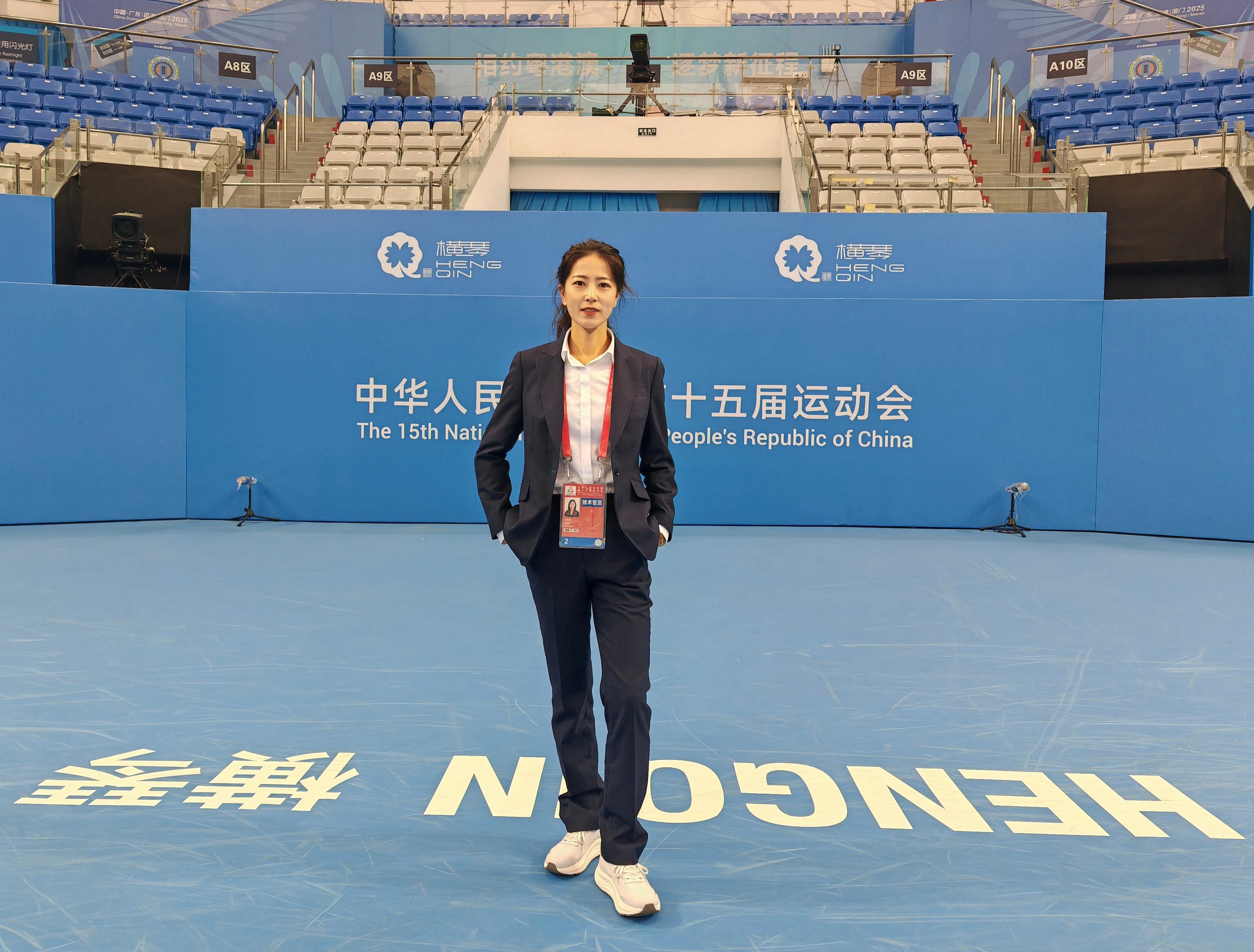 十五运会网球竞技组赛事汇聚全国顶尖选手,赛事强度与专业标准均达国内顶级水准,对技术官员的专业能力、执裁经验和综合素养提出了非常高的要求,能够参加执裁工作,是组委会对裁判专业执裁水准与职业道德的高度认可。在为期十二天的激烈赛程中,孙满意老师肩负主裁判重任,先后执裁了男子团体、女子团体及多个单项赛事。在赛事后期,孙满意老师严谨细致的作风和精准规范的判罚得到组委会高度信任,被委派执裁了单项赛女子双打半决赛,其执裁表现赢得组委会、参赛选手及赛场观众的一致认可,充分展现了我校体育教师过硬的专业素养和职业风范。