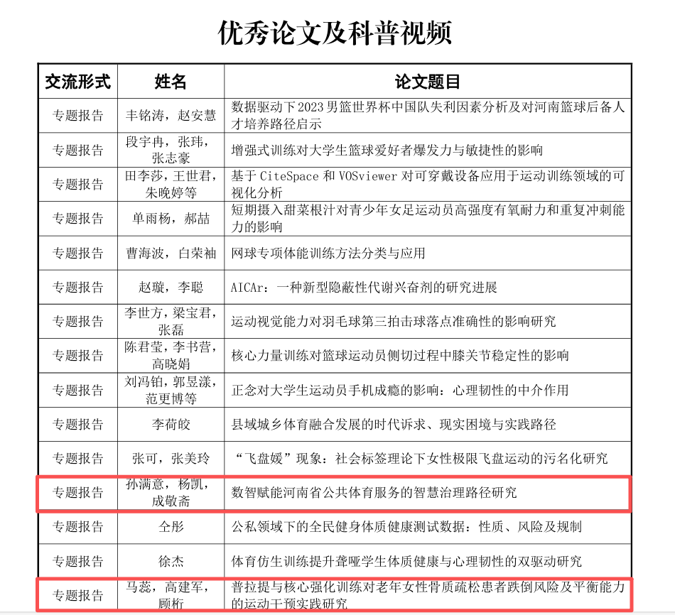 快猫视频 教师以及研究生获第一届河南省体育科学大会优秀论文