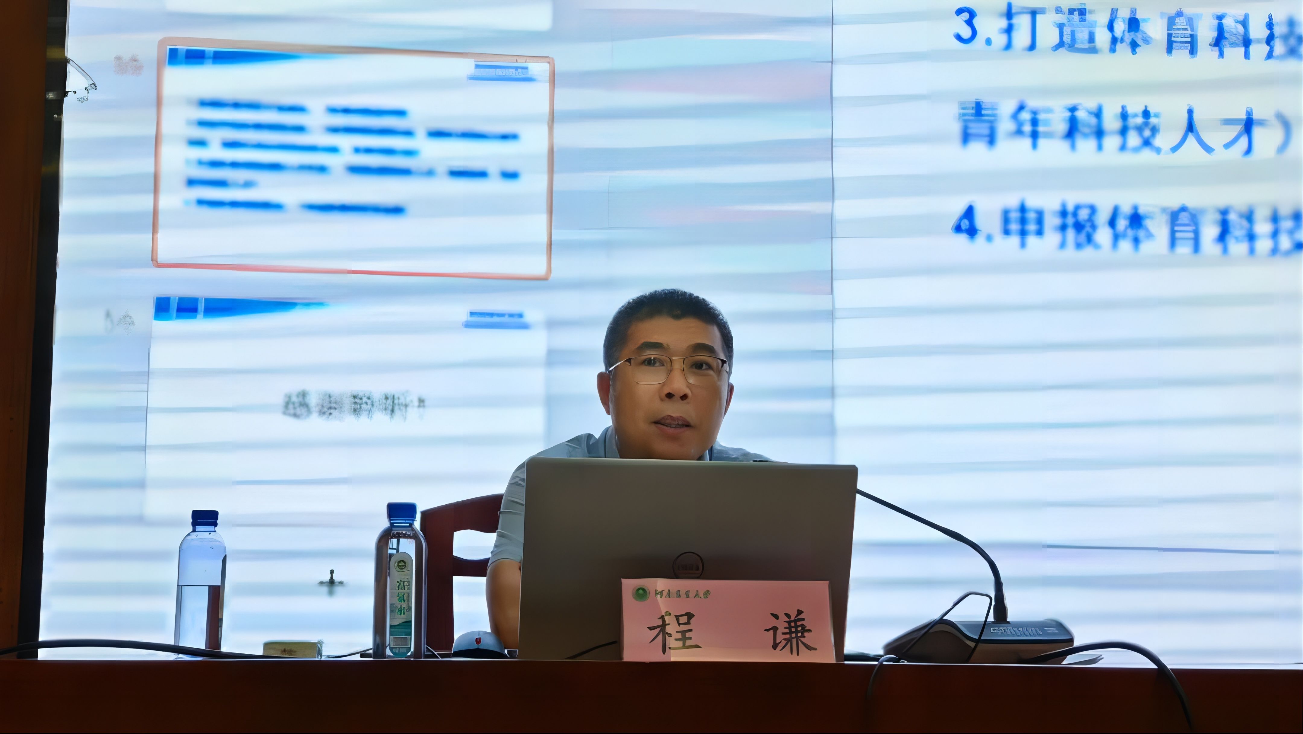 (通讯员/图 黄妍)为响应推动体育强国建设的号召,快猫视频 于6月13日15:00在龙子湖校区图书馆一楼报告厅开展科技创新助力体育强国建设学术报告会,国家体育总局科教司科技处处长程谦作为主讲嘉宾出席,快猫视频 院长唐大鹏主持会议。