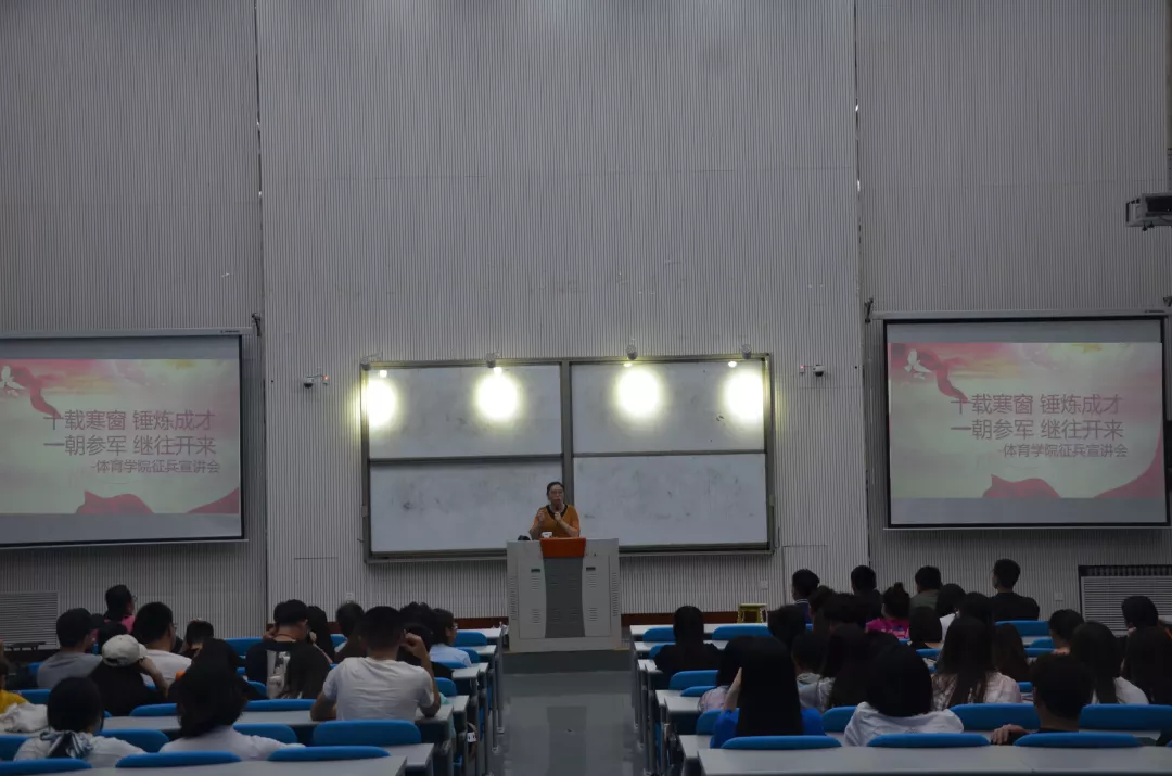 在繁塔楼大教室5召开2021年征兵入伍工作宣传会议,院团委书记黄妍、辅导员张予倩到场出席,各年级学生代表参加此次会议。