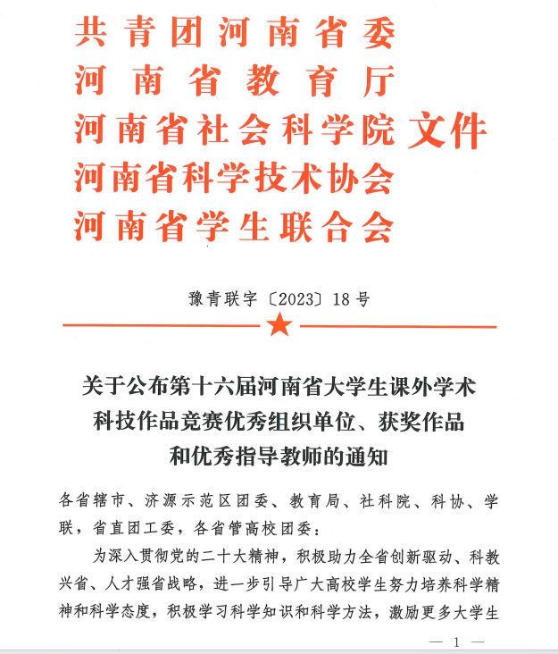 近日,由共⻘团河南省委、河南省教育厅、河南省社会科学院、河南省科学技术协会、河南省学生联合会共同主办的第十六届“挑战杯” 河南省大学生课外学术科技作品竞赛顺利结束,快猫视频 学生作品获省赛二等奖。