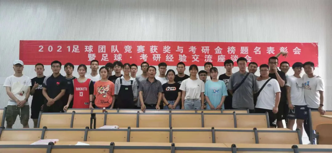 于2021年6月1日下午三点在繁塔楼D座208教室召开了2021足球团队竞赛获奖与考研金榜题名表彰会暨足球•考研经验交流座谈会。出席本次会议的有上官义勤老师、体院团委书记黄妍老师,本次座谈会由18级足球队队员李子昂主持。