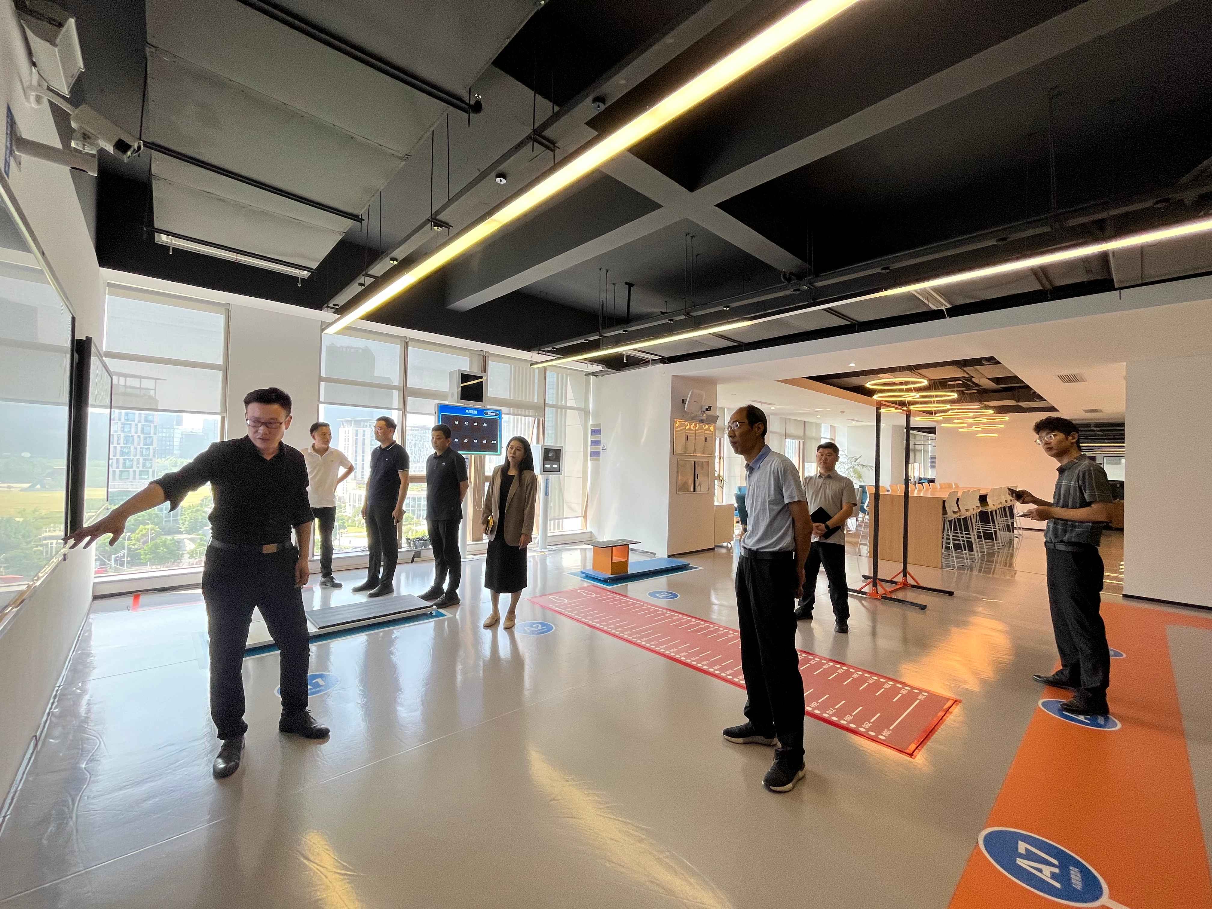 河南星火燎原软件科技有限公司作为教育大数据领域的领军企业,专注于体育智能化平台的研发与应用。在王晓东总经理的陪同下,唐院长一行参观了公司研发的体育智能化平台和智能健身器材,对体育数字经济的蓬勃发展有了更直观的认识。